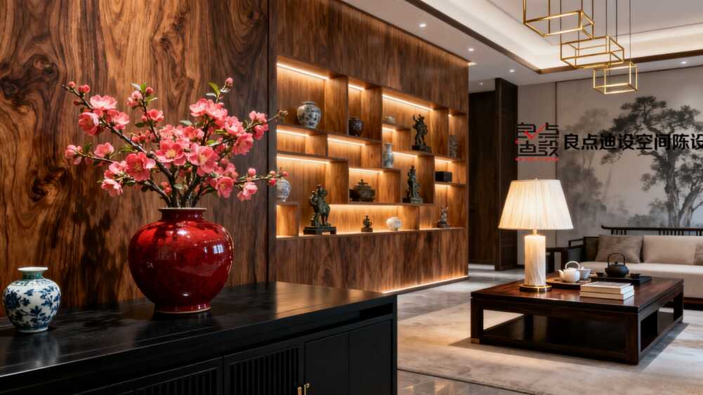 另一側(cè)整墻博古架太會擺了!瓷器、茶罐、小擺件高低錯落。暖光燈一打,每件器物都像會講故事。記住擺七分滿留三分白,透氣感才是關(guān)鍵。