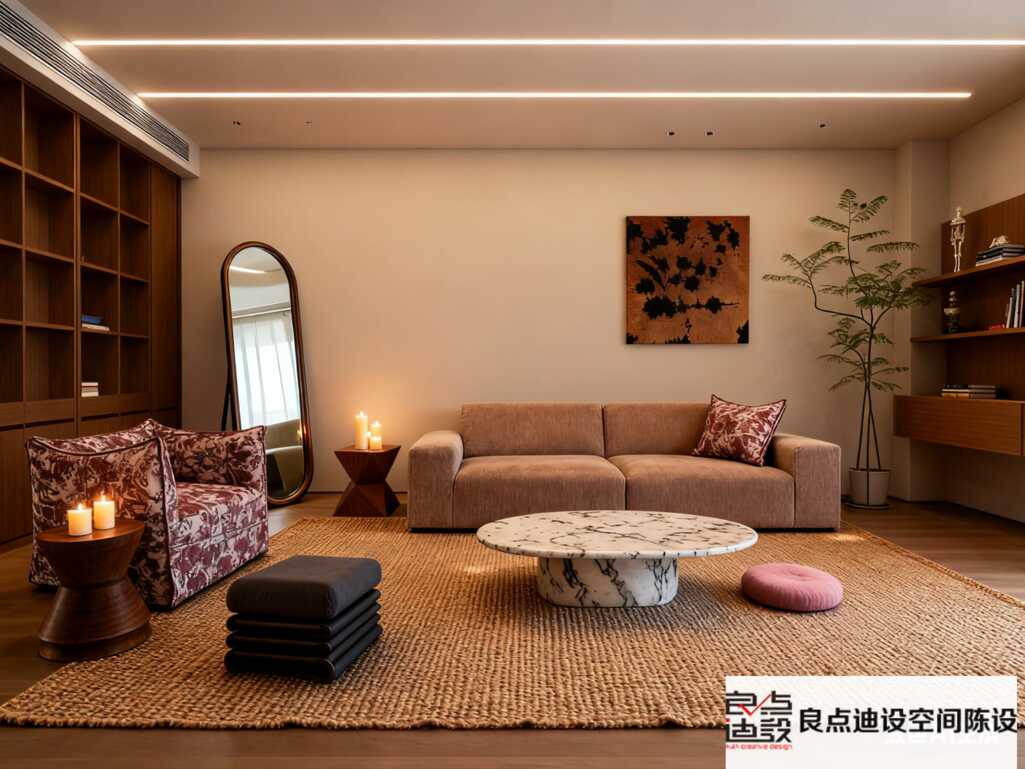 輕硬裝: 墻面別搞復雜造型,乳膠漆選好色號(珍珠白、布萊墾棕這類暖調高級色很穩),頂面簡單處理就OK。省下的錢,投入在好燈、好植物、好香薰上!
