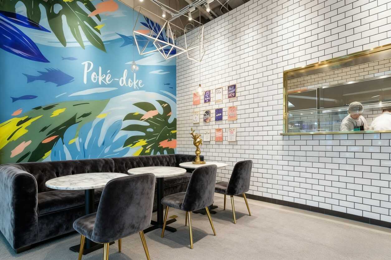 寶子們!今天帶你們?cè)拼蚩ㄟ@家剛開(kāi)就火出圈的Poké-doke餐廳,這裝修簡(jiǎn)直長(zhǎng)在年輕人的審美點(diǎn)上!一進(jìn)門(mén)就被那片蔚藍(lán)色海洋壁畫(huà)征服了——游動(dòng)的熱帶魚(yú)和搖曳的棕櫚葉直接把海邊度假感拉滿,白色磚墻上的彩色掛毯更是點(diǎn)睛之筆,這種碰撞絕了!