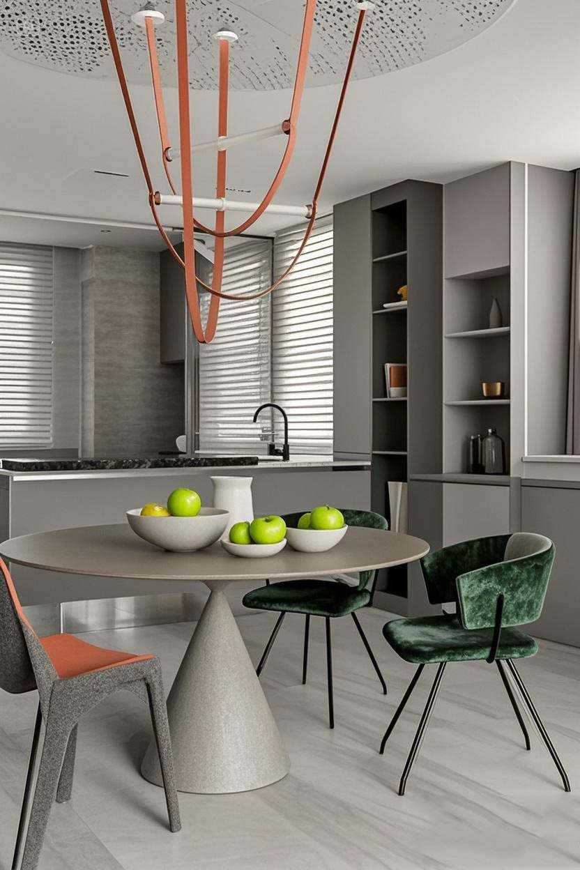 餐廳與廚房由一道玻璃門隔開,利用玻璃的通透感,營造出連續(xù)的視覺印象,既能隔離油煙,又能保持與家人的溝通,增進家人之間的互動。