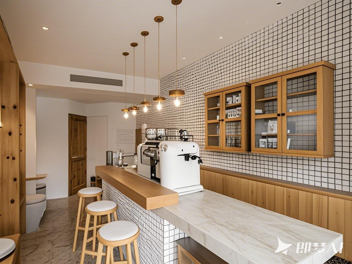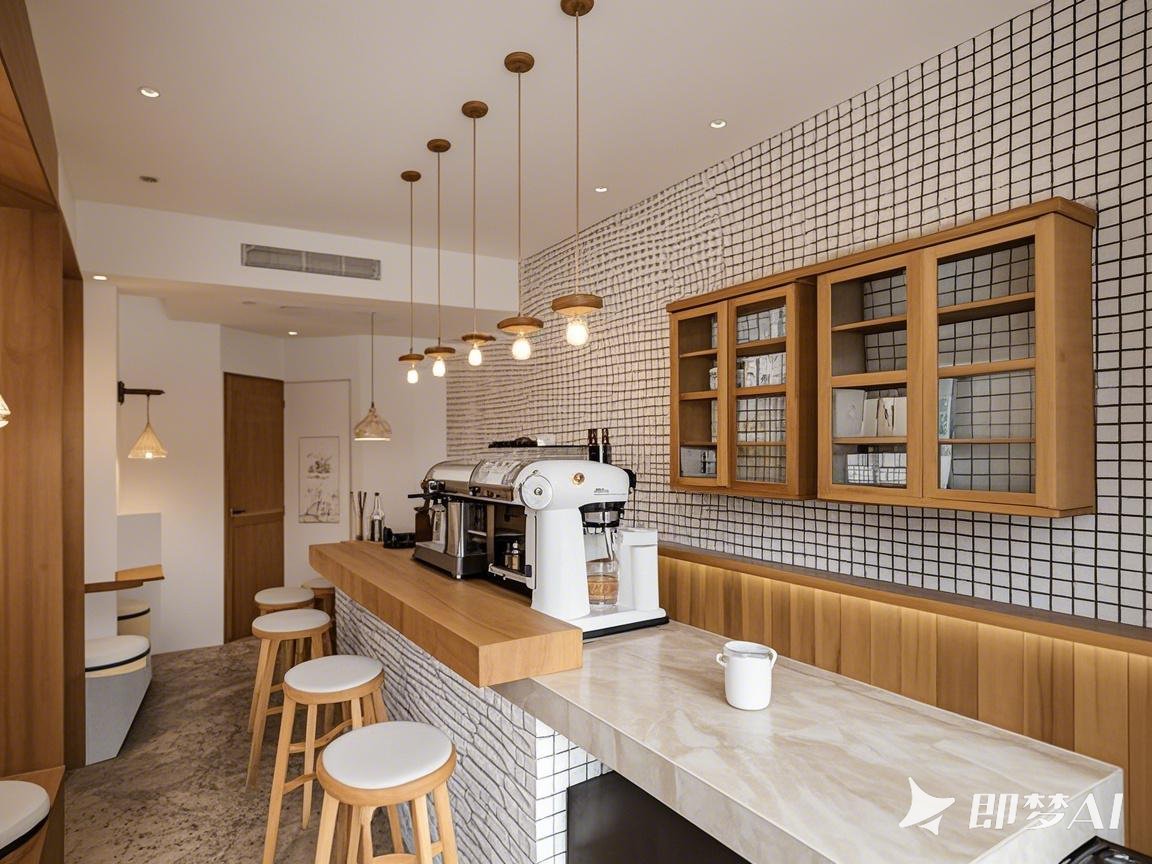 老板***懂色彩心理學!原木色桌面配奶白色瓷磚,這不就是ins網紅店的標配?但人家玩得更6——木質吊柜直接做整面墻,既能藏丑丑的咖啡豆包裝,又自帶復古濾鏡buff,隨手拍都出片!