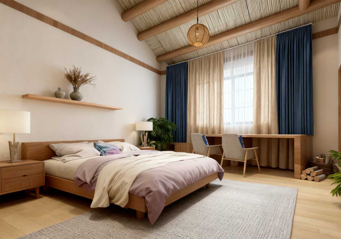 原木+藍窗簾!這間民宿的治愈系軟裝設計搭配讓我想原地退休!