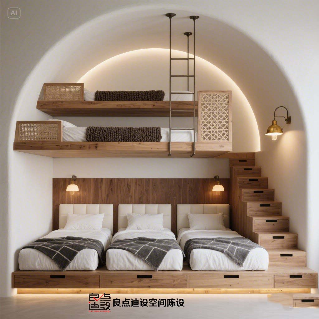 拱形民宿軟裝設計天花板!5㎡造雙人床+三鋪位的神仙操作