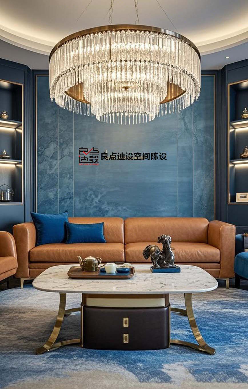 3. 茶色軟裝家具搭配藍色墻面:藍色是一種冷色調,和茶色的溫暖形成了鮮明的對比,能夠營造出一種清新自然的氛圍。