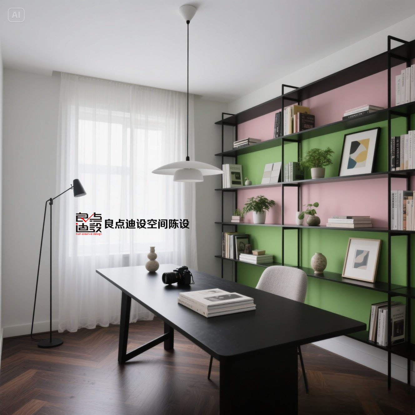 黑綠粉書架直接封神!這間書房配色太絕了!