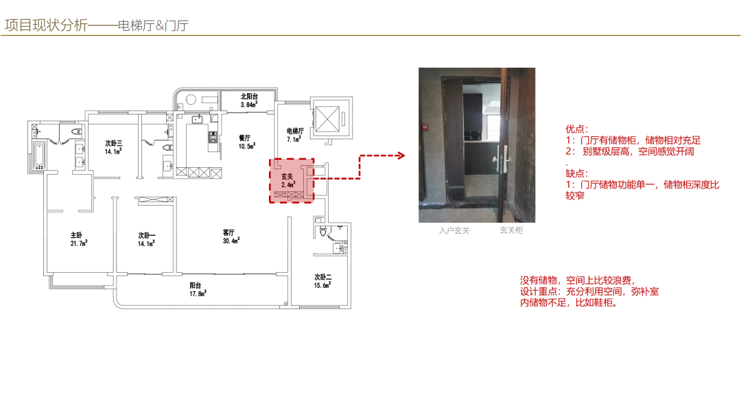有收納柜,但是深度較窄,后期是可以在玄關做一些補充性的收納柜,比方說鞋或者是換季的鞋子、外套、包包、圍巾之類的,我們通過內部的一些細化去做整體的布置。