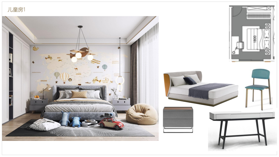 其中一間 南次臥 當做兒童房使用,床頭作硬包,整體軟裝可以以顏色來區(qū)分小主人的性別或者以長遠來看,可以用中性色為基調,以簡約和性價比來裝飾整個空間,房間的采光和照明比較重要,并且單獨的學習區(qū)域需要寬敞一些,還需要增加一些書本的收納。