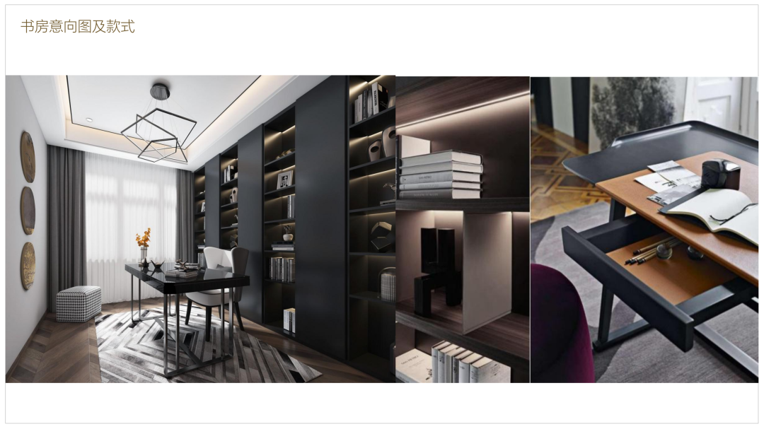 北面的小房間當作獨立 書房使用,形式是多種多樣的,不同的風格有不同的設計手法以及材質的運用都是跟風格息息相關的,需要注意的是頂面跟側面,他跟墻體的一些收口的問題,材料肌理的選擇,也應該跟燈具、窗簾這些軟裝方面的東西整體統(tǒng)一起來去考慮。