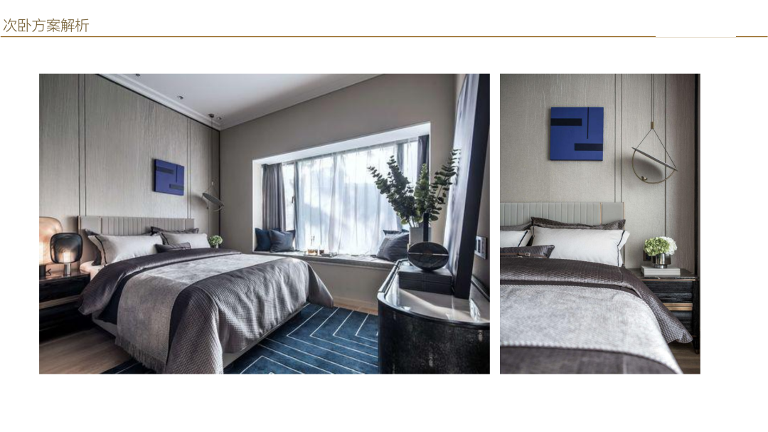 作為套房,將睡眠空間+衣帽收納空間+洗漱空間為一體,床尾有需要的話,可以增加抽屜柜收納跟梳妝臺,兩個南次臥獨立的大衣柜能夠滿足客房的日常衣物收納。北次臥