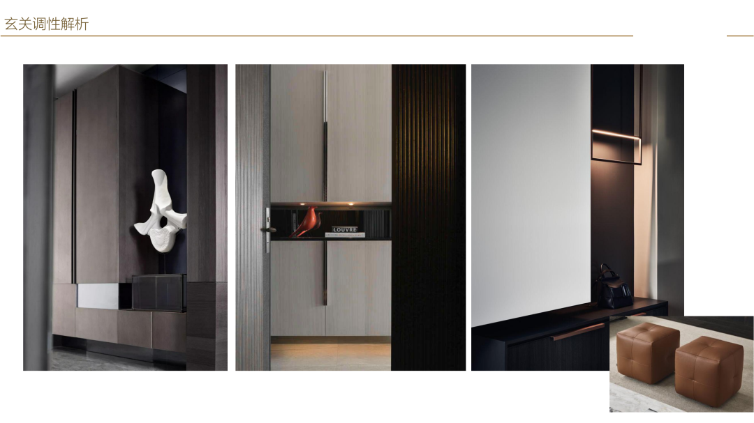 玄關 以木飾面為視覺主導,集收納、換鞋于一體的門廳柜,底部懸空留出放鞋位置,承載了功能與裝飾兩大特性,讓入戶的功能需求與極簡美感同時得到滿足。