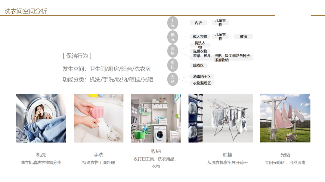 此區(qū)域為 洗衣房 ,是集機洗、手洗、晾曬和收納的區(qū)域,可以再添加一些設備,洗衣、熨燙、收納一條龍,并且設置單獨的操作臺,洗衣房不單只是洗衣的地方,也可以在這里縫補衣服,或者進行其他需要用水的活動。