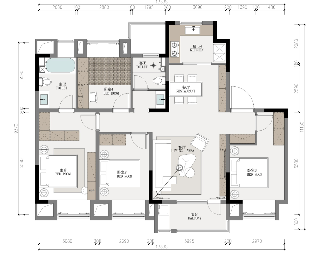1、標(biāo)配4房2衛(wèi),滿(mǎn)足更多功能需求,可預(yù)留空間足夠;