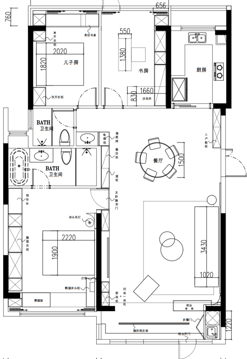 4、書房陽臺地面找平同室內(nèi)高度,小陽臺不封窗;增加沙發(fā)床也可以當(dāng)做臨時的房間。