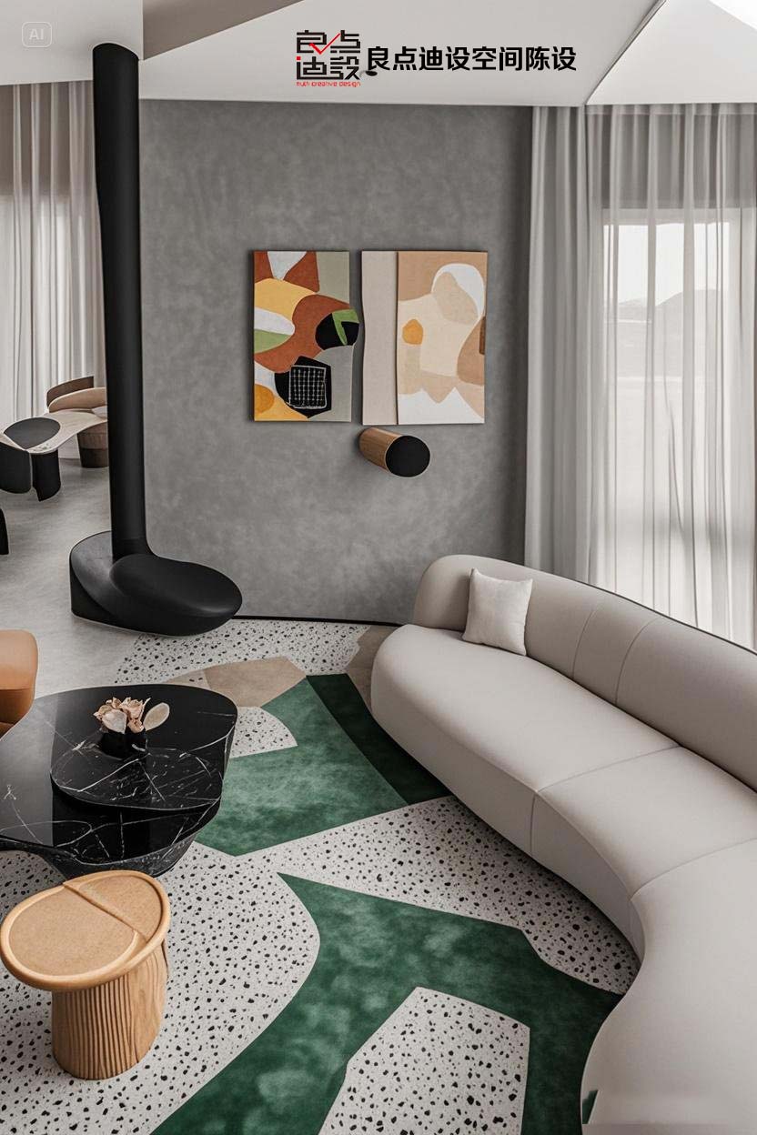 灰白客廳美到炸!弧形沙發+綠意地毯,這才是簡約天花板!