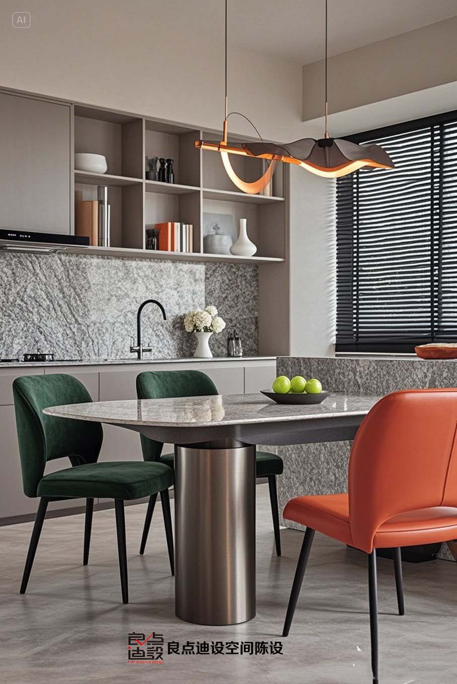 ?? 刷爆朋友圈的極簡軟裝!灰白大理石+跳色餐椅,我家廚房餐廳這樣裝太高級!