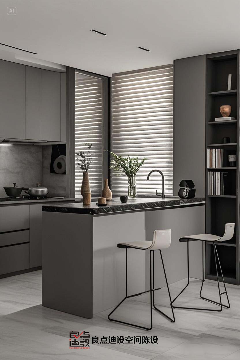 灰白黑廚房教科書級玩法|90%業主看完狂求軟裝設計方案
